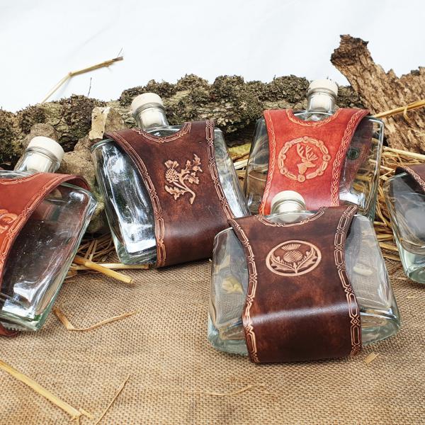 Ce porte-flasque en cuir au design unique est spécialement réalisé pour les flasque de l'échoppe.